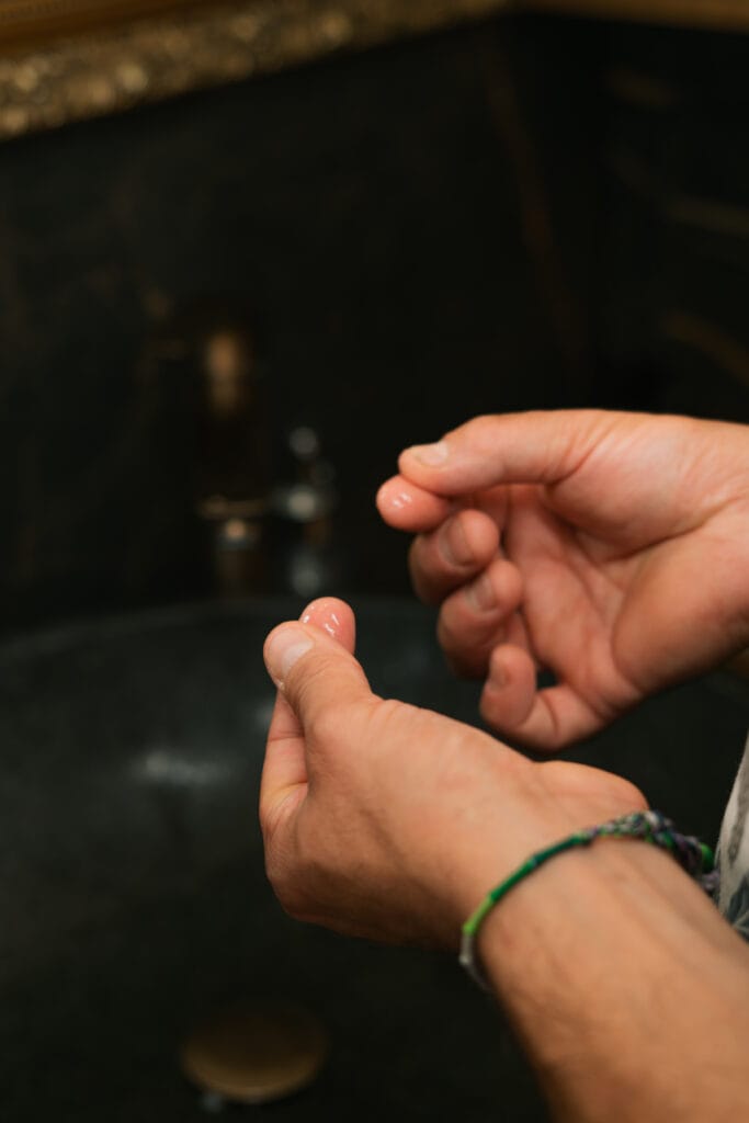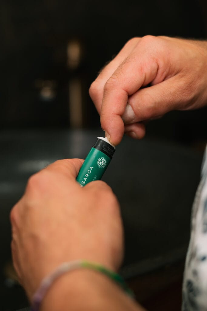 Roll up just enough from the tube — not too much. Think lip balm meets pirate swagger.